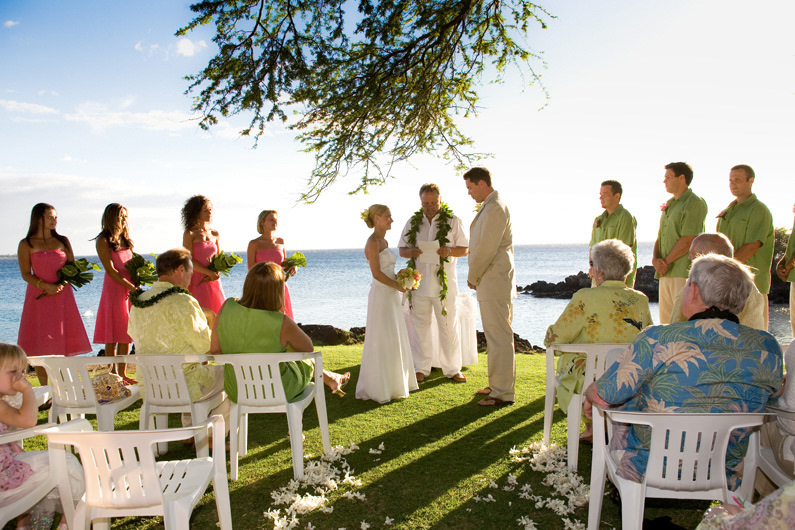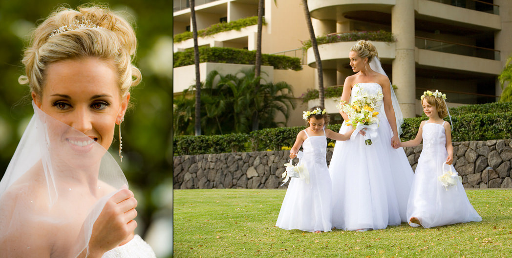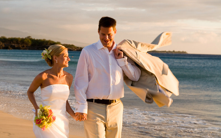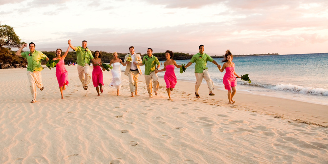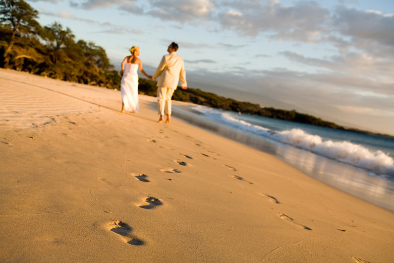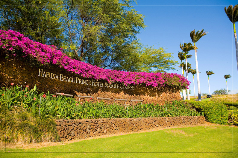The Hapuna Prince Resort rests at the end of the Big Island's top ranking Hapuna Beach Park. Turtle Point is an intimate, secluded wedding venue at the water's edge and overlooks the lengthy, sandy white coastline. I love to photograph a bride walking among the massive palm tree columns at the resort's front entrance and on the beach at sunset. Gorgeous.
