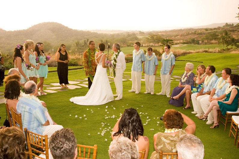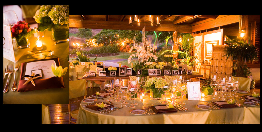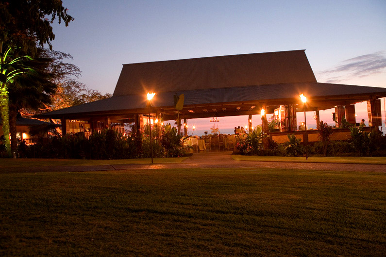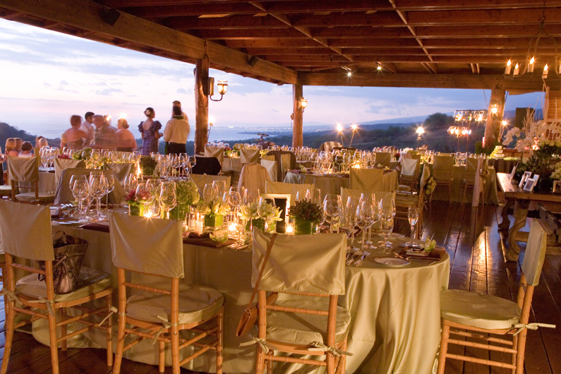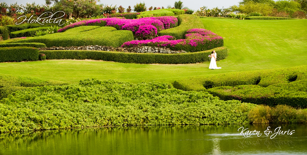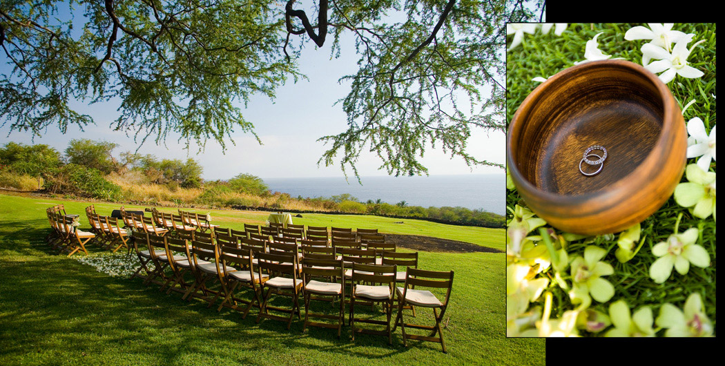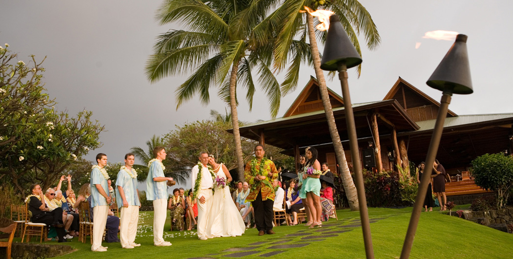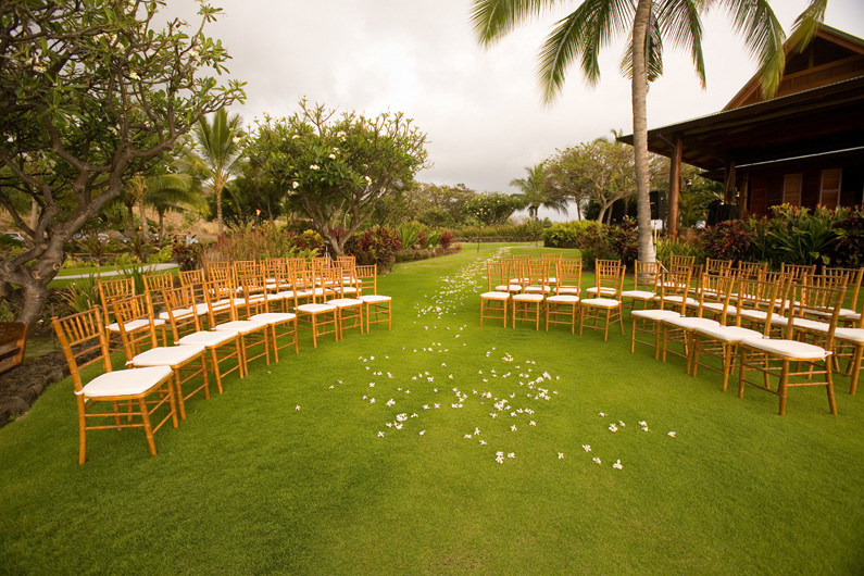 Massive Ohia trees support the structure of the Club House surrounded by grounds of koi ponds, ti, plumeria, ginger and haliconia garden and is nestled at the edge of a Jack Nicklaus designed golf course. Available only to residents and guests of residents right now, it has a Classy Hawaii Wedding feel.
