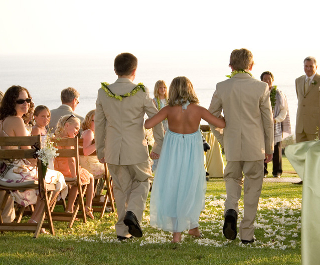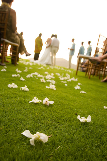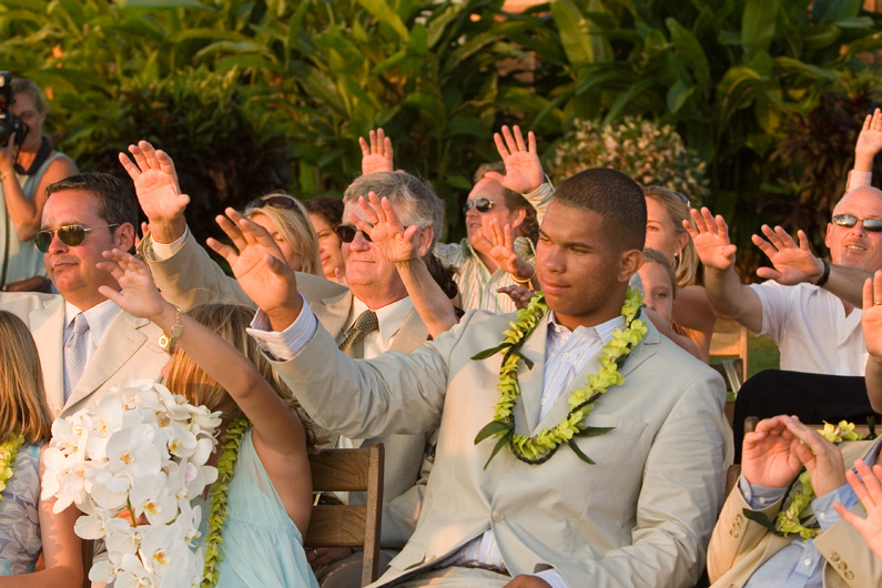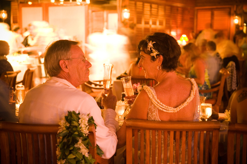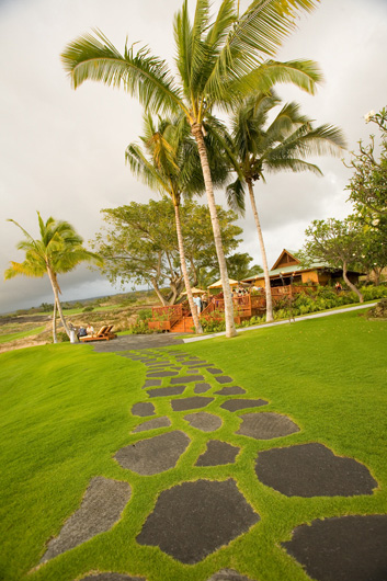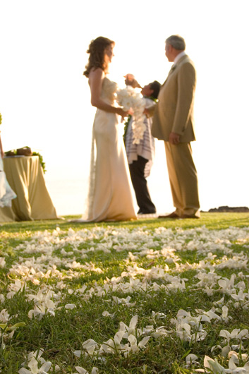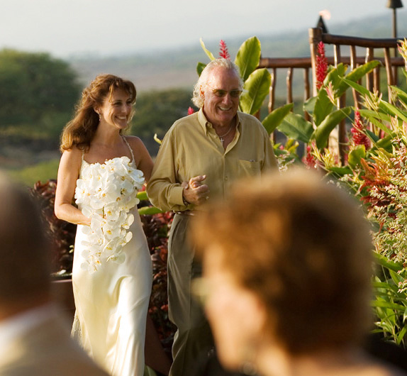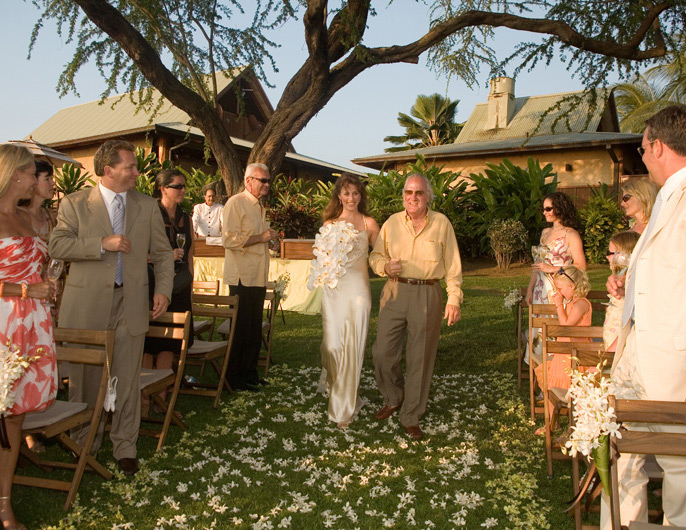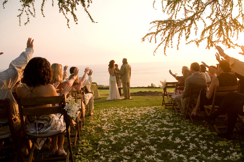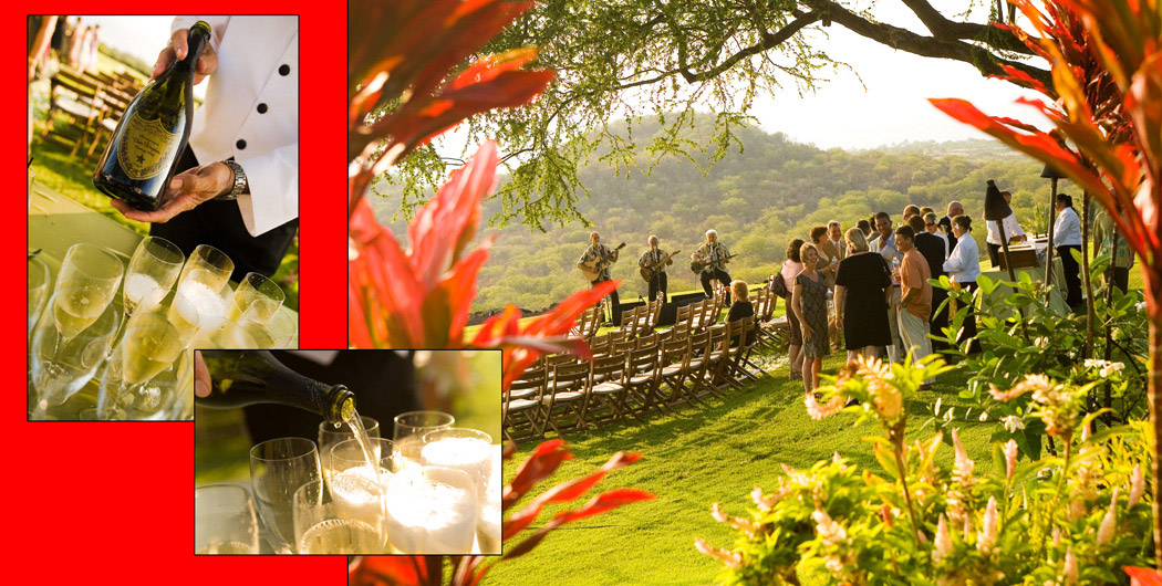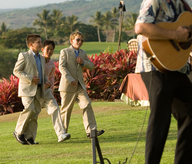 Massive Ohia trees support the structure of the Club House surrounded by grounds of koi ponds, ti, plumeria, ginger and haliconia garden and is nestled at the edge of a Jack Nicklaus designed golf course. Available only to residents and guests of residents right now, it has a Classy Hawaii Wedding feel.